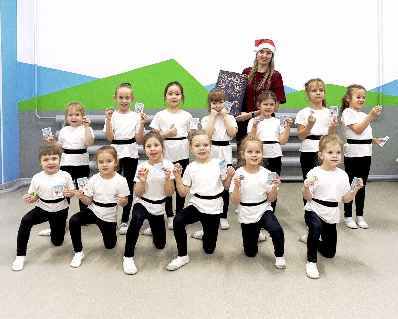 В финале всех занятий были подведены итоги месяца и девочки получили свои заветные значки «Месяц без пропусков», а также новогодние открытки с пожеланиями от своего хореографа.