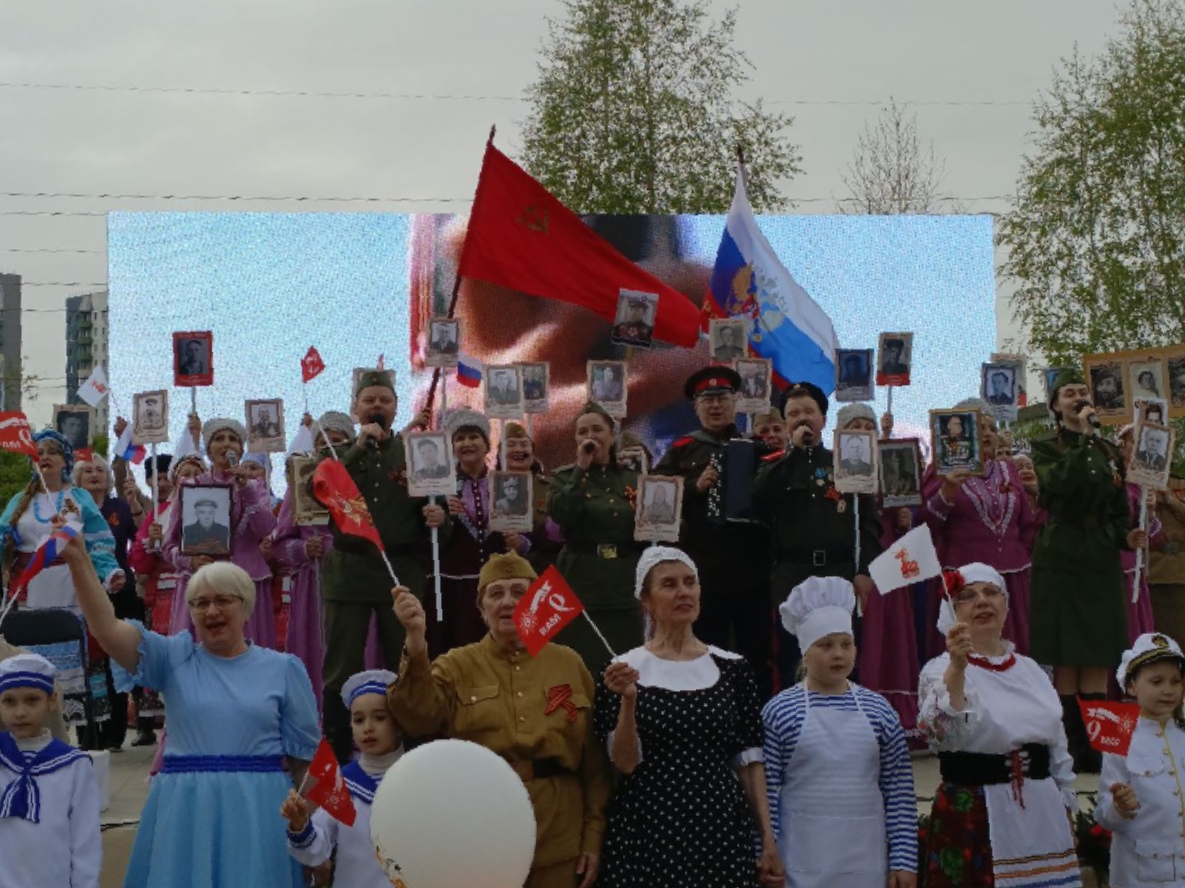 Завершилось мероприятие ярким исполнением легендарной песни «День Победы», в которой на сцену вышли все участники программы.