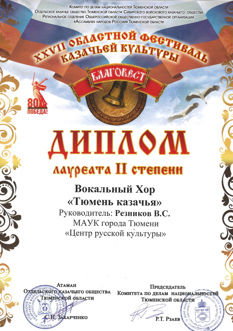 Вокальный ансамбль "Тюмень казачья" был создан в 1996 году на базе ДНК "Строитель", в настоящий момент коллектив занимается на базе Центра русской культуры.