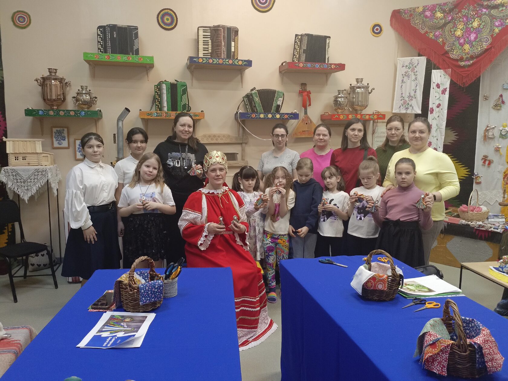 В рамках XII городского конкурса профессионального мастерства среди специалистов культуры, где талантливые и креативные профессионалы соревнуются за звание лучших, наша прикладница, руководительница клубных формирований «Бумажные истории» и «Волшебный клубок» Юлия Сергеевна Бондаренко провела открытый семейный урок для детей и их родителей. Гости творческого занятия познакомились с некоторыми обычаями наших предков — в частности, видами обережных кукол-мотанок и особенностями их изготовления. И, конечно, каждый получил возможность самостоятельно сделать одну из таких — куколку-«северяночку», оберегающую от болезней и невзгод. Все получившиеся куколки будут переданы реабилитационному центру «Новая надежда», где проживают женщины, оказавшиеся в трудной жизненной ситуации.