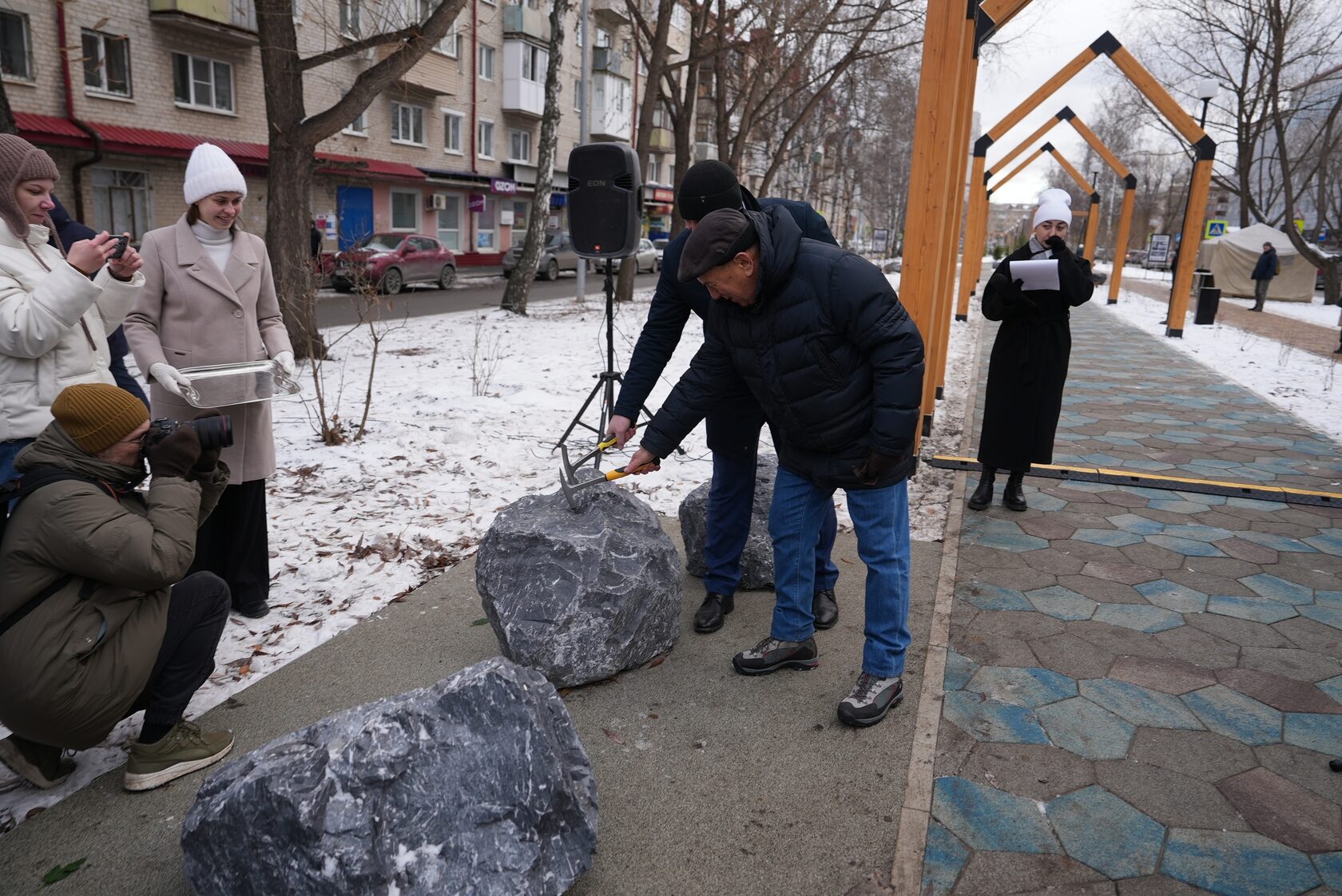 Кульминацией церемонии стал символический Первый удар по камню, прозвучавший в честь открытия Аллеи. Право совершить этот символический акт было предоставлено Евгению Валерьевичу Сорокину и Анатолию Михайловичу Брехунцову.