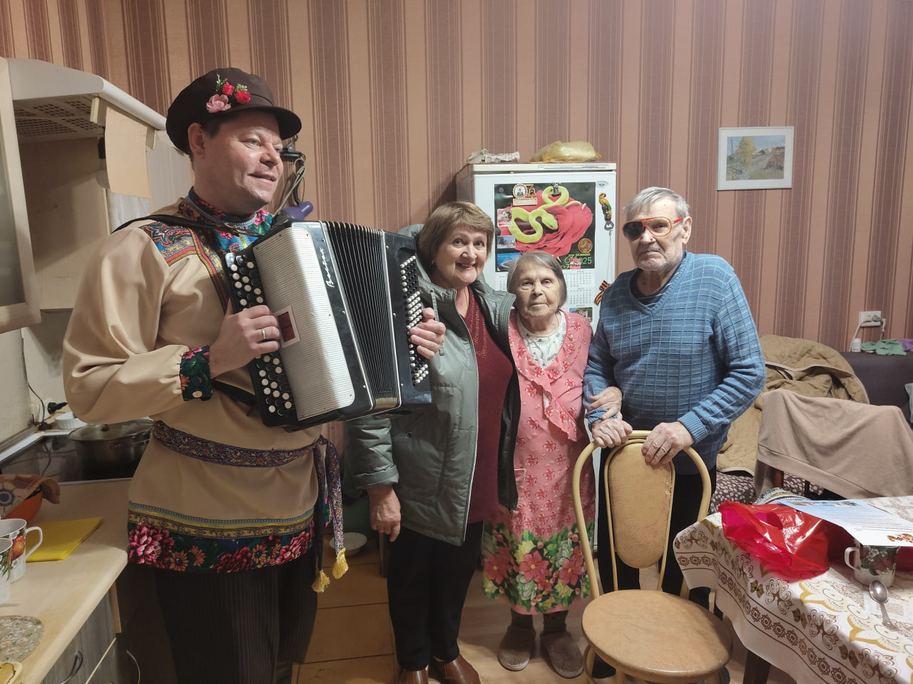 За окнами дождь, но мы постарались подарить этим замечательным, мудрым и добрым людям немного радости и хорошего настроения: вместе попели под баян легендарные песни их молодости, а кое с кем даже потанцевали и посмотрели семейные фотокарточки.